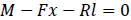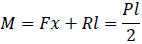 梁ABを座標xの位置で切断して力およびモーメントのつり合いを考えます。0≦x≦lのとき、断面に生じるせん断力および曲げモーメントをそれぞれF、Mとすると断面より左側の部分における力のつり合いより