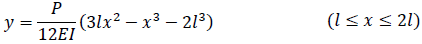 となるので梁CEのl≦x≦2lにおけるたわみ曲線の式は